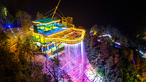 集光影聲效、廊橋水瀑、高空游樂于一體 以“云”元素打造的獨特游樂綜合項目